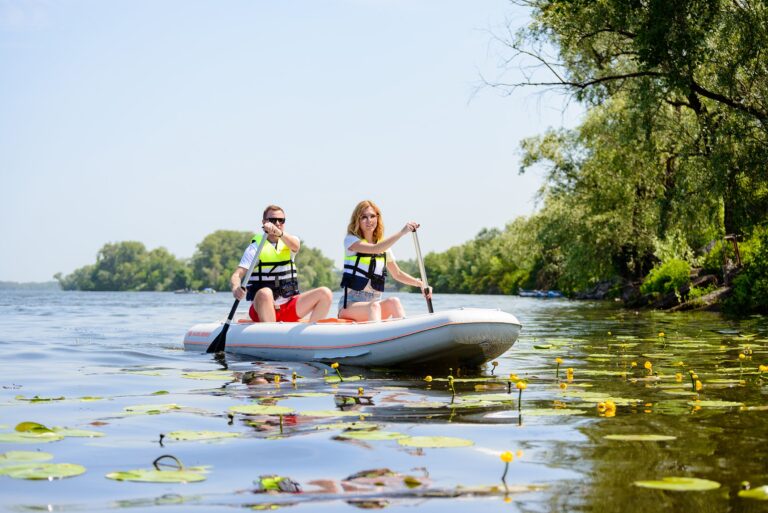 KOLIBRI inflatable canoes Travel series are light, space-efficient inflatable boats with a stationary transom. The canoe has good buoyancy, excellent stability, high carrying capacity with a low-weight set. The inflatable canoe has sliding seats, comfortable handles for carrying the boat, and course stabilizers.