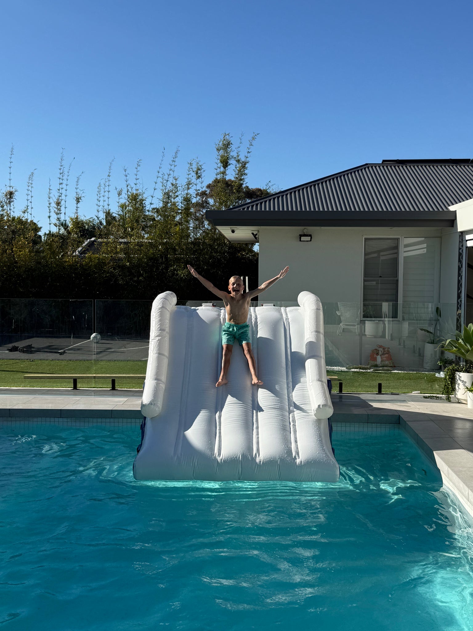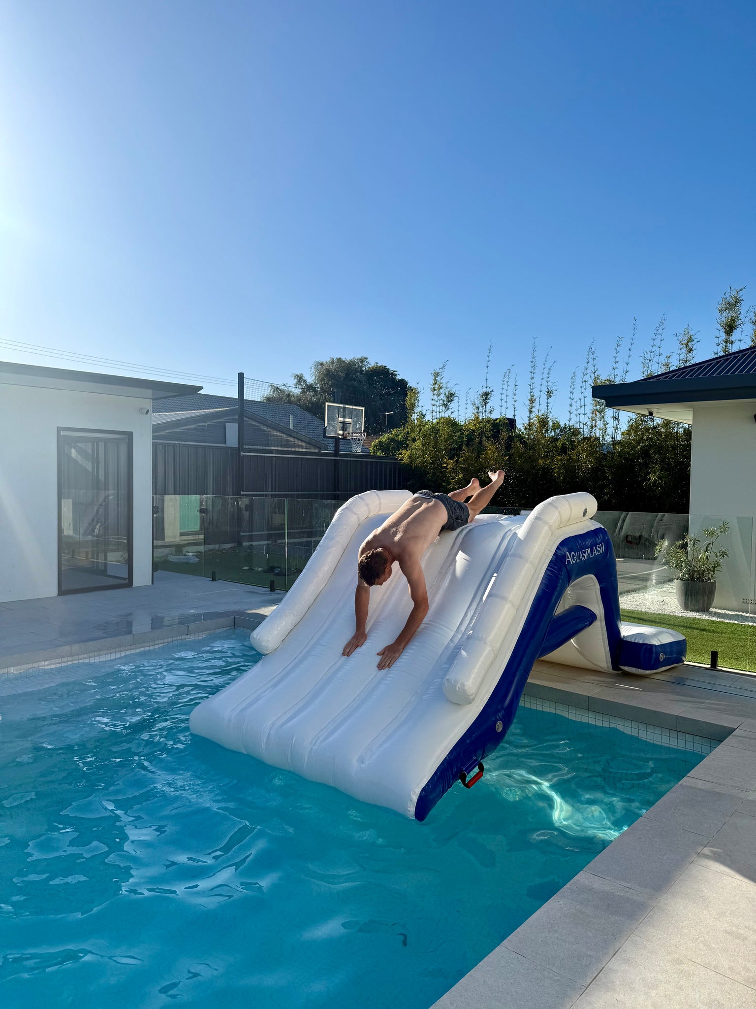 The Aquasplash pool slide is the perfect size for most pools and can be positioned to best suit your pool area.